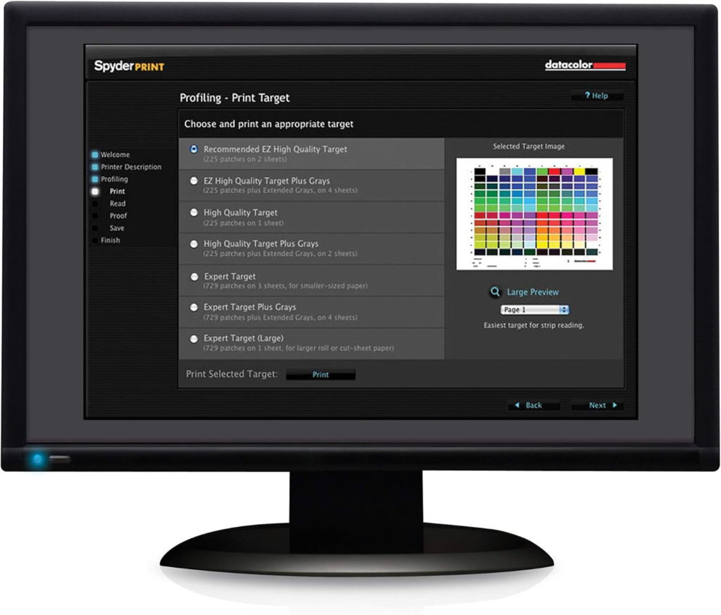 The Spyder Print is a spectrocolorimeter-based calibration system developed by Datacolor. It measures printed color samples and creates custom profiles that guide your printer in reproducing colors more accurately.